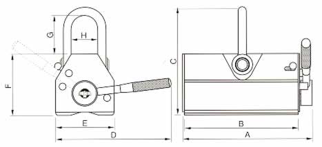 ■注意 鉄鋼を持ち上げている間以外は、ハンドルを「ON」にしないで下さい。 ■寸法図 ![]() ■仕様