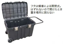 工具などをまとめて保管、運搬できる大型ツールボックス 鍵つきで、容易に中のものを持ち出させない50kgの積載に耐える丈夫なボディ |