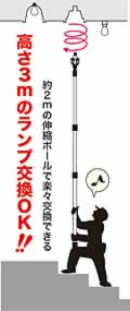 エコ電球の交換にも最適 白熱電球・レフランプ・電球形蛍光ランプもOK 一人で楽に、素早くランプ交換 |