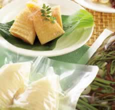 ●耐衝撃性、耐摩耗性に優れ、破袋が起こりにくい強力包装。 ●ピンホールが起こりにくい、コーナーカット仕様です。 ●バリアー性がありますので、食品の保存性を向上するとともに、風味を逃がしません。 ●低温(-40℃)性に優れ、加熱殺菌(100℃×30分)可能。バリアー性があります。 |