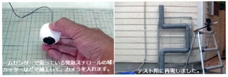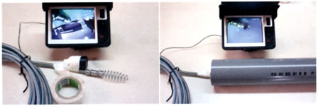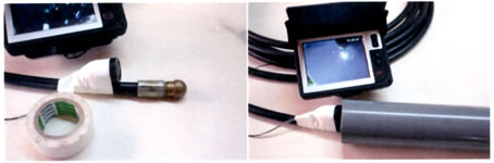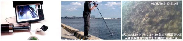 | 赤外線カメラ搭載で配管内・屋根裏・トンネル等暗い場所でも使用できます。 ポケットに入るコンパクトサイズ&軽量ボディで持ち運びもラクラク 本体に動画・静止画を撮って保存でき、ケーブルを使ってPC等への 接続も可能。 ライン長25mで狭い場所でも奥まで調査可能! 海洋土木・海洋研究・水難事故・配管内調査・床下調査などに最適!(長期間のモニタンリグなどには不向きです。) ![]() ■特長 ●330g、115×75×55mm、ポケットに入るコンパクト設計 ●カメラは直径20mm長さ34mm。強力赤外線ライト付き ●コードは直径1mm、ケブラー繊維採用により張力40kg以上! ●ビデオ録画(6時間)、静止画撮影とも内蔵 ●連続7時間使用可能な強力バッテリーを採用 ●画像は本体内蔵の専用メモリーに記録されますので付属のPC接続ケーブルをPCにつないでいただきまして、画像をPCにダウンロードしてください。 ■使用例 ●配管内洗浄を見ながらする! 高圧洗浄機ノズルの少し手前に絶縁テープでカメラ部分を固定。25mタイプは、40mm以上の配管内を見ながら洗浄。 ![]() ●配管内の詰まりを見ながら取る! パイプクリーナの先に絶縁テープで固定。25mタイプは40mm以上の配管内を見ながら目ずまり除去作業が出来る! ![]() ●曲った配管内を調査! 丸い発泡スチロールを加工してカメラ部分を中に入れ込み、浮力をつける。曲がった配管等の上部より、水と一緒にカメラを流し込むと曲がった配管内でも調査が可能です。 流しきった後、回収時に録画をして配管内を調査する。 65mm以上の配管に対応。 ![]() ●屋根裏、床下等を簡単に調査! 適当な伸縮棒(竿)にカメラ部分を絶縁テープ等で固定して、真っ暗な屋根裏や床下の調査ができる。 強力赤外線ライトが付いているので、懐中電灯など用意しなくても簡単に調査できる。 ![]() ●橋げたの亀裂調査に最適! 上記と同様に伸縮棒等に絶縁テープでカメラを固定して、橋げたの亀裂調査等にも利用が可能! ![]() ●もちろん水中調査用に! 伸縮棒などに絶縁テープでカメラを固定し、水中の調査に使う。 水中内の建造物や水の吸い込み口の目詰まり調査に最適です。 ![]() ●その他、井戸の調査に使える! コードは40kg以上の張力があります。 適度のオモリをカメラ下にぶら下げ、井戸内に落とし込む。 視野角が135度と広く、強力赤外線ライトが付いているので、簡単に井戸内を調査が出来ます。 25mタイプは水深25mまで対応! ![]() ■タイプ