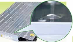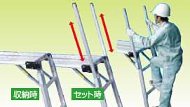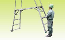 どんな凸凹のある場所でも天板はいつもフラットを保ち、脚立と足場板の役割を1台ではたします。 安全強化と作業効率が大幅に向上します。 踏面幅42.6(全種共通) |