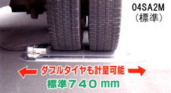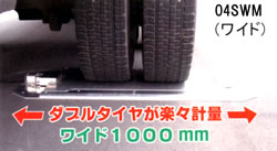 車輌100台分の最大積載量を登録出来ます。 重量オーバーの場合は、警報ランプ(別売)で過積載を知らせます。 ●検出部が広く、楽々計量!(M1559T-04SWM(ワイド)) M1559T-04SWM(ワイド)は、検出部の幅が1000mmと広いため、計量時の運転者負担が軽減され、楽に計量できます。