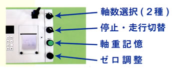 ●耐久性アップ! 検出部は、センサー容量を従来品(当社比)と比べ20%アップしました。 ●検出部ベース板採用! センサー部保護のため専用ベース板採用。 アンカー固定でズレ防止にも役立ちます。 ●ファンクションボックス 4つのボタンで簡単に操作できます。 本体のボタンはロックされ、操作ミスを防ぎます。(※オプション) ![]() ■計量方法 ●走行計量 1.走行モードを確認し、車両を時速4km以下で検出板上を通過させます。 最後の軸を計量後、自動的に軽量結果を印字させます。 ●停止計量 2.停止計量モードに切替、車種・軸数を設定します。1軸毎に検出板上で停止させ、都度軸重記憶ボタンを押します。 印字ボタンを押すと計量結果が印字されます。 ![]()