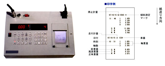 | ■特長 ●走行計量も可能! 時速4km以下の走行で検出部を通過するだけで、総重量を計量出来ます。 (トレーラーは停止のみ計量可能です。)