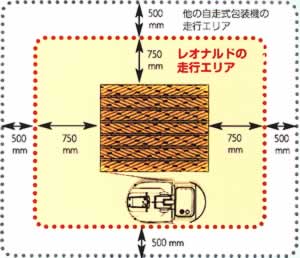 | ■特長 ●6通りのプログラムをメモリーすることができます。 ●自走式のため、パレットの大きさ・形状を選びません。 ●コンパクトな設計で、保管スペースもとりません。 ●バッテリー内蔵のため、包装中電源を必要としません。 ●移動が簡単で、平らな場所であれば包装場所を選びません。 ■包装時の寸法図 ![]() ■仕様
