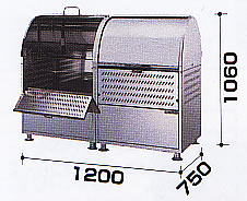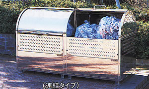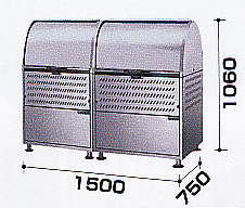 | ■特長 ●組立不要の完成品です。 ●美観を損なわないデザインにより、きれいな町並みを演出いたします。 ●世帯数の少ない集合住宅や店舗などに。 ●屋外はもちろん、屋内(施設のゴミ・工場等の端材入れ)でも設置可能です。 ●鳥、犬、猫の侵入を防ぐので、ゴミを荒らされる心配がありません。 ●雪が入りにくい設計です。 ●取手の高さは地面より685mmです。 ■使用例 (M1584KM-1800RSUS) ![]() ■タイプ
