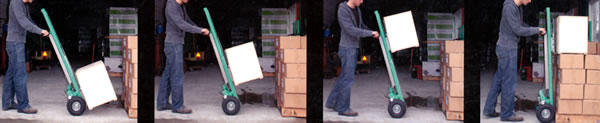 | ■特長 ●コンパクトな本機器一つで持ち上げと移動の両方が可能。 ●ハンドトラックと同様の操作性のよさ。 ●ステアリングが非常に軽く、バランスが取りやすい。 ●操作が非常に簡単。 ●機器の自力によって、トラックやプラットフォームに積み込みが可能。 ●労働損失を防止する。 ●肉体ストレスに関する安全衛生規則上の罰金を防止できる。 ●テールリフトが不要 ●交換可能な各種積載プラットフォーム、建物出入り口での操作が簡単。 M1611TL-75KGを使用した持ち上げ作業は、 単純な人力による作業と比較すると時間がかかると思えるかもしれません。 しかし、人力による作業では瞬時に肉体的最大負荷に達し、 長期的にはその人の背中や腰をぼろぼろにしてしまいます。 したがって、M1611TL-75KGを使用して持ち上げ作業を行えば、 以下のようにして結果的に時間を節約することができるのです。 -通常であれば二人以上の作業員を必要とする荷物を一人で搬送することができます。 -商品の移動に関するプランニングや待ち時間の必要がなくなります。 -作業員が持ち上げ作業によって疲労することがありません。 -破損や人的事故が減少します。 ■使用例 ![]() ■仕様