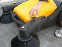 清掃力が大幅向上し、更にワイドになりました。 細かい砂も回収可能です。 ・メインブラシはシフトレバーで高さ調整可能。 ・サイドブラシはノブ回転式で高さ調整可能。 |