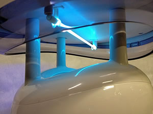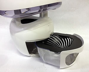 CCFL蛍光管の近紫外線と光触媒反応(TiOS2)により無視を誘き寄せ電動ファンの吸引によって 虫を捕獲します。 | 光触媒電動吸引蚊取り捕虫器 品番 M1618H-TR-BLUE 廃番 |