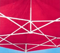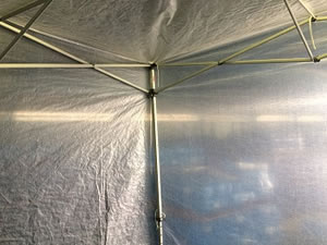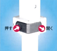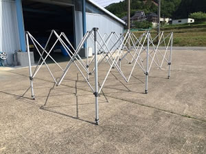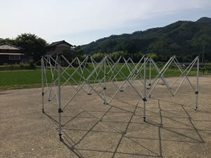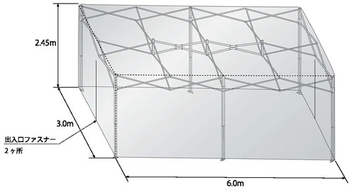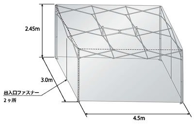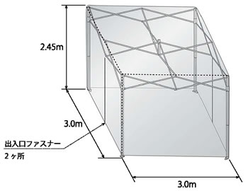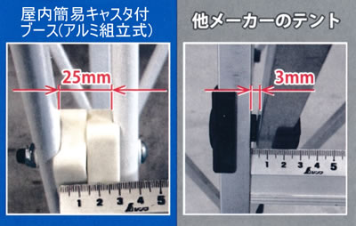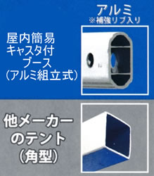 ■フレーム構造解説 ●トラスの間隔が広い トラス開閉時に天幕のひっかかり・食い込みを防ぐ最適な間隔です。 ![]() ●楕円フレーム 天幕の記事を傷めません。 ![]() ■製品画像 ![]() ![]() 屋内簡易キャスター付ブース(アルミ組立式) ■寸法図