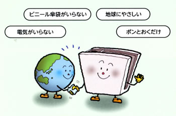 ビニール傘袋を使わない! 電気を使わない! 傘のしずくを落とす環境商品 |