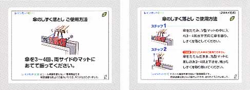 ●傘を3~4回、両サイドのマットにあてて振って下さい