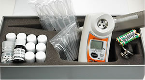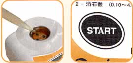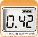 | ■特長 ●滴定法より簡単 ●丸ごと水洗いできる防水仕様(IP65) ●30秒測定 ■測定方法 ①果汁0.1ml(100μl)と試薬をよく混ぜ合わせます。 ![]() ②、①の液を測定部に注ぎ、フタを閉めてSTARTキーを押します。 ![]() ![]() ③酸度が表示されます。 ![]() ■テストキット これ一台で測定ができます。 キノン試薬溶液(5ml)10本、マイクロピペット1本、マイクロピペット用チップ10本、 スポイト10本、基準合わせ液1本、揮発防止用蓋1個、電池2本が付きます。 ![]() ■仕様