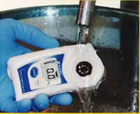 | ■特長 尿素水はディーゼルエンジンの排出ガスの浄化システム内で排出ガス中の窒素酸化物(NOx)を水と窒素に分解するのに使われます。M16AL-UREAはコンパクトサイズ、100gと軽量で手軽に測定できます。 ●水で基準合せが可能 ●水で丸洗いできる防水仕様(IP65) ●測定時間はわずか3秒 ●保管用ケース付き ●形態に便利なスラップを取付可能 ●電池残量表示機能付 ■水で丸洗いOK。 ![]() ■測定方法