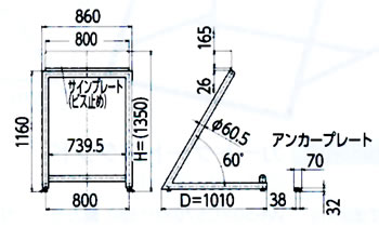 ●寸法(mm):W860×D1010×H1160 ●材質:ステンレス ※表示プレートは別売です |