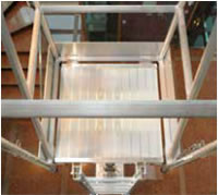 手動ウインチ高所作業台の一番の特長は、作業床手すりわくの“ななめ手すり”。 作業床部分に乗り込むときに、持ちたいところに手すりがあるので、スムーズにグイッと!乗り込めます。 また、はしご部分が作業床の外側に設置してあるため、一番上の踏ざんが見やすく、降りるときにも安心して降りられます。 |