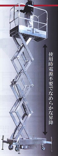 軽量・安定性抜群のアルミシザース式昇降作業台 | アルミバッテリー式高所作業台 品番 M196WA-3600M 廃番 |