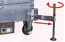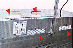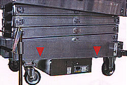 ■標準装備 ●アウトリガーインターロック ●下降時警報ブザー ●水準器 ●緊急降下装置 ●一点吊り用穴(長さ5m以上で十分な強度のナイロンスリング2本必要) ●フォークリフト差込スペース ●過積載防止装置M196WA-4600Mのみ) |