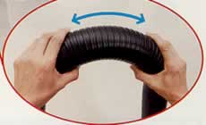 ■自立するダクト 曲げ伸ばし自由で必要に応じて形を変更し、その形を保持できるダクトは吸引したい場所へぴったりフィットさせること が可能です。 思い通りにならない、重くて長いダクトによる作業中のイライラを解消します。