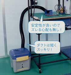 静音設計なのにパワフル吸引力。 騒音と有害な煙から「あなた」を守ります。 風量調整や自立するダクトなど様々な機能で現場の悩みを解決します。 ライン変更も簡単に。 |