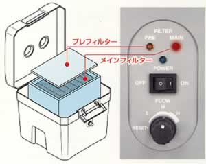 ■7.5kgの軽量、コンパクトタイプ。 移動に便利な取っ手付きで、ポータブル吸煙器として活躍、ライン変更も簡単になります。 ※従来品より35%の軽量化を実現しました。 ●曲げ伸ばし自由でぴったりフィット ![]() ![]() ■安定性が良いのでズレる心配も無し。 ダクトは短くスッキリ。 ![]() ■高性能の捕集効率を維持できるフィルター交換お知らせ機能 フィルターの交換時期を間違うと、どんなに高性能な吸煙器でもその性能を発揮することはできません。 そこで、ファン回転数を検知させることで適切なフィルター交換時期をお知らせ、快適な作業環境をいつでもお約束しま す。 ●プレフィルター 80%が目詰まり、または200時間使用した場合に橙色のランプが点滅 ●メインフィルター 10枚目のプレフィルターの交換時期がきた場合に橙色と赤色のランプが点滅。 ![]() ■仕様
