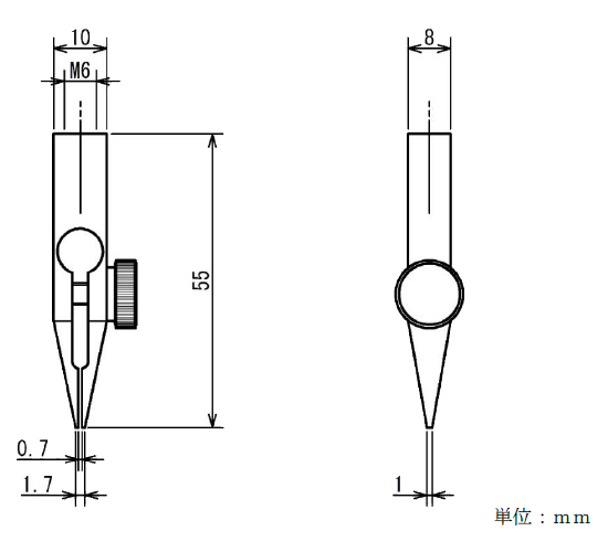 ■ファインポイントチャック / スモールチャック 細い形状の試料をはさむときや、狭いスペースでの測定に適しています。小型軽量なので低荷重の測定にも適しています。