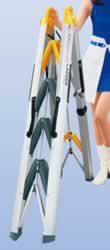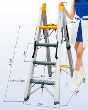 ●棒状に折りたためるので収納や持ち運びに便利です。 ●アルミ製で腐食にも強い。 ●安定感のあるワイドステップ。 ※4段目は使用できません。 |