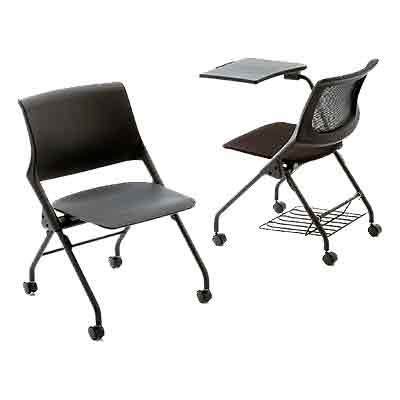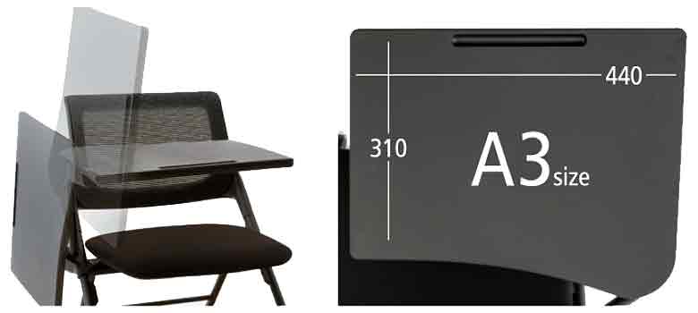 | 研修会やセミナーなど、さまざまなビジネスシーンで。 ヌードタイプ、メッシュタイプ、布張りタイプの3種類をラインナップしました。 ![]() ■特長 ●座を跳ね上げるだけで簡単・コンパクトに水平スタッキングができ、省スペースの収納が可能です。 ![]() ●ノートPCも使える大型A3サイズのメモ台は、ご使用しない場合は座ったままチェア側面に折りたためます。 ![]() ●メモ台と座下に使い勝手の良いラックを装備。そのまま水平スタッキングで収納もできます。 ![]() ■タイプ