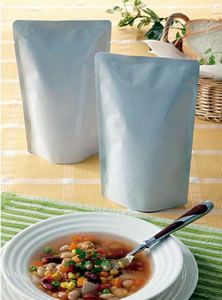 ●白印刷を施したハイレトルトスタンド袋 ●ハイガスバリアのアルミ箔を使用 ●レトルト殺菌対応(130℃30分) |