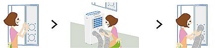 | ■工事不要 窓パネルで簡易のエアコンにも 排熱を室外へ出すので効率的に涼しく。 室外機を設置できないお部屋にもおススメです。 ![]() ■キャスター付スポットエアコン 涼しさが求められる場所だけを効率的に冷やします。 ![]() ■簡易窓パネル付き 排熱を室外へ出して、さらに快適に過ごせます。 窓パネルをつけてエアコン。 室外機が設置出来ない部屋で。 ![]()