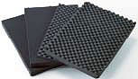 ■衝撃ウレタン 特長 ●波型ウレタン(軟質)と切れ目入ウレタン(硬質)の緩衝材がカメラやビデオ、精密機器などの大切な収納物を衝撃からしっかりガードします。 ●切れ目入ウレタンは角の切れ目が入っており、収納物に合わせて抜き形状を簡単に作ることが可能です。 ![]()