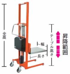 | ■用途 ●荷物の運搬・昇降など。 ■仕様 ●手動走行式 ●昇降方式:バッテリーボールねじ式 ●電源:単相100V(コード長さ:2m) ●搭載バッテリー:30A19L ●充電時間:約10時間 ●前車輪:固定ウレタンキャスター2個 ●後車輪:自在ストッパー付ゴムキャスター2個 ■製造国 ●日本 ■寸法図 ![]() ■仕様
