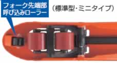 | ■特長 ●スローダウン機能が標準装備しているため、コントロールレバーを最上位に引き上げると、静かに降下できます。 ●呼び込みローラーが付いているので、軽く、スムーズに挿入可能です。 ●ステアリングホイール、ロードホイールはポリウレタン車輪(M227HPN-30ST/M227HPN-30LTはナイロン)であるため、軽く運搬できます。 ●ハンドルは人間工学に基づいたエルゴノミックスハンドルを採用しています。(M227HPN-30ST/M227HPN-30LT以外) ■用途 ●パレットに載った荷物をフォークですくい上げ人力で運搬する便利な運搬機器です。 ■ポリウレタンダブルローラーを標準装備 ●1tタイプからダブルローラーを標準装備し、 重量物も楽々運搬。 ● 耐久性と静音性に優れたポリウレタン車輪を採用。 ![]() ■フォーク先端部呼び込みローラー採用 フォークをパレットに抜き差しする際、フォーク先端部裏側の呼び込みローラーによりスムーズな挿入が可能です。 ![]() ■ドイツ規格過負荷防止機能付ジャッキポンプ 最大均等荷重の110%以上の荷重が掛かると、安全のため過負荷防止機能が働き上昇できなくなります。 ![]() ■エルゴノミックスハンドル ![]() ■タイプ