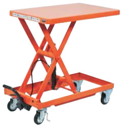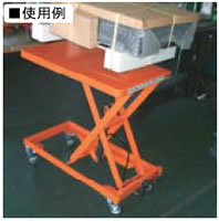 ●手押しハンドルが無い為、長尺物等の作業台として使用できます。 ●テーブルの下降は、レバーズハンドル(テーブル下降装置)で簡単に操作できます。 |