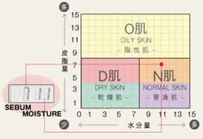 肌の油分と水分量を簡単に計測することができます。 肌のうるおい度、かさつきや皮脂の分泌を数値で表示、スキンケアに欠かせない製品です。 |