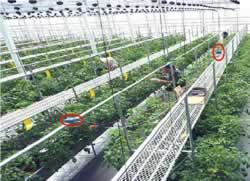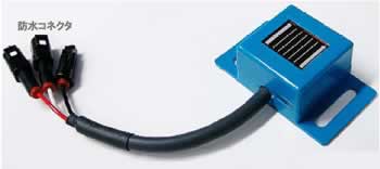 ![]() 【ビニールハウス内で複数接続(アレイ接続)している様子です】 ※○部分がPVSS-01です ■全体イメージ ![]() ※防水コネクタより先の出力ケーブルはオプション品です(別売) ※出力ケーブルの先へ{表示装置・データ収集装置・制御装置等々}を直接接続する事ができます。 ■仕様