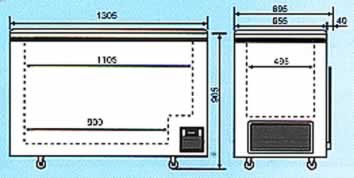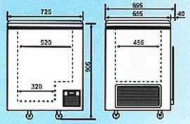 | ■特長 ●断熱厚100mm 外気温の影響を受けにくく冷凍・保冷効果大。省エネ効果抜群。 ![]() ●デジタル温度計 コントローラパネルに庫内温度も適確に表示し、温度管理がしやすくなります。 温度警報表示・警報ブザー有り ![]() ●庫内スチール鋼鈑 庫内はスチール鋼鈑仕様で、冷凍食材出し入れ時のキズや負担に強く、清掃がしやすくなります。 ■ガラス扉 ![]() ■設置場所の確認 フリーザーの機械室側と背面は放熱しますので、それぞれ100mm程度のスペースを確保して下さい。 カタログ掲載の商品は屋内専用です。 雨水のかからないところでご使用下さい。 特にデジタル温度計部分は水がかからない様ご注意下さい。 ![]() ![]() ■タイプ