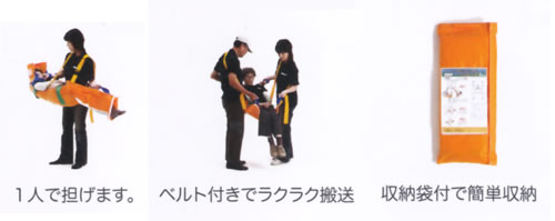 | ■概要 M2309B-160Aは、計量コンパクトなため交通機関、オフィス、家庭で身近に保管、携帯できます。 ベルトジョイント式なのでわずか5~10秒で使用可能。 家庭の中などの狭小箇所や階段での移動は基本的に2人で担ぎますが、 M2309B-160Aは腕力で担ぐのではなく身体全体で担ぐので、緊急時には1人でも担げる構造になっています。 安全重視で破断防止のため担架構造は4層にして縫製、 素材は防災、防水布(ナイロン・ターポリン)を使用しているので安心です。 ![]() ![]() ■仕様