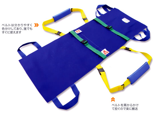 | ■概要 M2309KB-160Aは、寝たきりの方、車椅子使用車、妊産婦、高齢者、入院治療中等の方々の日常の移動をサポートします。 布団の上に敷いて使用すれば寝ている方を軽く起こすことが可能なので、介助する方の負担も軽減されます。 介助資格は特に必要ないので、誰でも使えて便利です。また緊急時には救急担架として利用できます。 素材は通常担架の仕様布(帆布)と違い、ツイル織り布を二重縫製。優しい肌触りが特徴です。 通常介護の場合は2人担ぎですが、緊急時には1人で担げるようになっています。 ![]() ![]() ■仕様