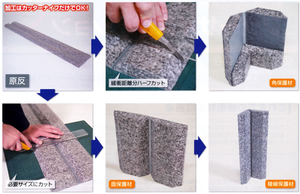 ◎カッターナイフでカットするだけで簡単に寸法を設定でき、どんなサイズの製品にも対応可能。 ◎サイズに加え、その構造も自由に変えることができるため、用途に合わせて角、稜、面 どの方向に対しても保護材として使用できます。 ◎コーナーパッドやサイドパッドとして、また突起のある製品などにも適用できます。 ◎単一素材で構成しているため、廃棄時の分別、またリサイクルも容易です。 ![]() ![]() ![]() ■使用方法 ![]() ※使用上の注意 ●本来の目的以外での使用は避けてください。 ●直射日光、雨を避けて、屋内保管してください。 ●可燃性ですので、直接火気にさらさないでください。 ●粘着テープ等の貼付、長期間に渡る加重、高温状態の放置は、破損、変形などを招く可能性がありますのでお止め下さい。 ●加工時にカッターナイフを使用される場合は、安全に注意してご使用ください。 また、それに伴う、けがや事故に対し当社は一切の責任を負いません。 ■仕様 ![]()