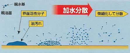 | ■特徴・効果 ●床洗浄、計量機の洗浄、部品洗浄、作業着、軍手の洗浄、手洗い等通常の洗剤として使用出来、白濁現象をおこさない全く新しい洗剤です。 ●油を超微粒子に加水分散させ、再付着しない為、油紋やオイルボールにならないことにより下水、排水に流れても油の二次汚染がなくなります。 ●グリストラップも汚れなくなり汲み取りコストが著しく軽減されます。 ●希釈タイプ(5〜10倍)なのでコスト削減になります。 ●水系洗剤の為消防法上の備蓄制限はありません。 ●本品はOECD規格DOC法による生分解度77%以上(日本食品分析センター調べ)の性能です。界面活性剤(5.5%) ●流出油等の処理にも効果があります。 ![]() ■使用方法 ●適量に希釈してお使い下さい。使用する水は、軟水、硬水、海水、泥水と場所と環境を選びません。 ●グリース油類は、40℃以下の温湯で撹拌後使用して下さい。 ●洗車機等、高圧洗浄等は効果が倍増します。 ■使用上の注意 ●希釈して使用するタイプのものは、希釈することで洗浄力を発揮します。 原液で使用した場合、洗浄力が低下することがありますので、必ず希釈してお使い下さい。 ●希釈水は、軟水・硬水・海水を問いませんが、強酸性(ph3以下)の水による希釈は洗浄力に影響を与える恐れがありますので、ご使用にならないで下さい。 ■タイプ