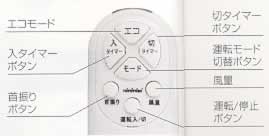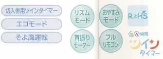 | ■エコモード 運転中、適度に「切」状態を挟んで、電気を節約します。 ![]() ■安全対策 @モーターカバーに燃えにくい素材 Aコンデンサに保護機能 B操作部に防炎処理(メカ式のぞく) ![]() ■切入併用ツインタイマー(リモコン) エアコンと併用して快眠&節電 「切タイマー」と「入タイマー」が併用できるのでエアコンと上手に組み合わせて、快眠&節電 ![]() ■入・切タイマー 1・2・4・6時間設定で快眠&節電 入タイマーでエアコンと扇風機がバトンタッチ。節電と快眠を同時にできる。 ■リズム風モード 自然風のような心地よさを演出します。 ■おやすみモード 徐々に風を弱めます。さらにお目覚め頃に再運転。 ■そよ風運転 弱運転よりもおだやか。風がうるさいと感じる方に最適な心地よさ。 ■操作部 ![]() ■寸法図 ![]() ■タイプ