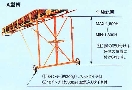 | ■特長 ●搬送物がこぼれにくい 搬送物がこぼれにくい、トラフ板とスカートの一体化構造。 ●頑丈なフレーム 頑丈な構造でベルトの蛇行が防止されます。 ●中寄席ベルトタイプもございます。(別途費用) ![]() ■対象搬送物 ●バラ物 土、砂、砂利、砕石、コンクリート、鉄鉱石、石炭、コークス、木材チップ、木材、ゴミ、肥料など ![]() ■A型脚 ![]() ■外形図 ![]() ![]() ■仕様