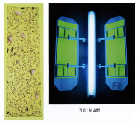 ■主に捕獲できる虫の種類 コナガ・ヨトウムシ・カメムシ・カナブン・ハエ等 ![]() ●光りが一方向に発行されるため、外部からの害虫を誘引しない ●アームを自在に可動できるため、土やホコリから粘着シートを守ることができる ●粘着シート面積が広いため、多くの害虫を捕獲 ●粘着シートの交換時期は、夏は3日、冬は2週間に一度の頻度 ■仕様