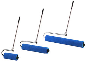 | ■即効除水システム(実用新案登録済) 吸水ローラーを転がすだけで施設内やグランド等に溜まった大量の水を効率よく除去し、乾燥を早めます。 一本当りの吸水量はM2382V-212-117Eで約3リットル。吸い取った水は専用バケツで即排水。 (吸水ローラーは単体でも簡単に絞ることが出来ます。) ■フレームは錆びにくいステンレス製です。ノブを回せば折り畳めます。 ![]() ■タイプ
