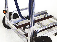 ■吸水ローラーモップ専用台車 専用台車で簡単移動 アルミフレームの軽量台車。 雨上がりのグランド等において、水溜りまでの吸水ローラーと絞りバケツの移動に便利です。 また、バケツいっぱいに水を吸い取っても排水箇所まで楽に運搬できます。 ![]() ■使用例 ![]() ■特長 ●バケツを載せたまま絞り作業OK ●高さ調整式ハンドル ●荷台には滑り止め付き ●積載物の転落防止ベルト付き ●転がり易い大径φ215mmノーパンクタイヤ ![]() ■仕様