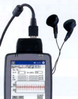 | ■ベアリングチェッカー機能 ●自分の耳でも診断を 聴音棒でベアリングのコンディションを判断されておられる方に是非使っていただきたい機能です。 イヤホンを接続すると音を確認しながら測定することができます。 ![]() ■モータ・ポンプ・ブロアなどの一般回転機械のコンディションチェックに ●メリット ![]()