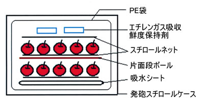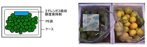 | ■特長 ●活性炭に臭素添着した化学吸着タイプのエチレン吸収剤です。 ●一般のエチレン吸収剤は、高湿度の影響を受け能力が大きく低下しますが、M2401MB-4Cシリーズは、湿度の影響を受け難く、高い吸着能を維持します。 ●防水通気性の特殊プラスチック包装材を使用していますので、多様な青果物に適用できます。 ●活性炭・天然鉱物を基材に使用していますので、安全性、廃棄性に優れています。 ![]() ■対象品 ●野菜類 短期輸送・・・ブロッコリー、トマト、タケノコ、きゅうり、ナス、アスパラガス 等 ●果実類 短期輸送・・・メロン、桃、すだち、バナナ等 長期貯蔵・・・リンゴ、柿、梨、カボス、すだち、キウイフルーツ、ブドウ 等 ![]() ■仕様