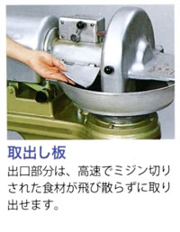 | ■特長 ●野菜、果物などのミジン切りに。 ●コロッケやメンチボール、ギョーザなどの下ごしらえにも。 ●ボール、カッター、カッターカバー、ハウジングなど食材に触れる部分には、ステンレスや耐蝕アルミ合金を使用。 ●食材に触れる部分は工具を使わず着脱でき掃除がしやすい構造。 ●カッターカバーが開いているとスイッチが入らず、運転中は開かないなどの安全対策も万全。